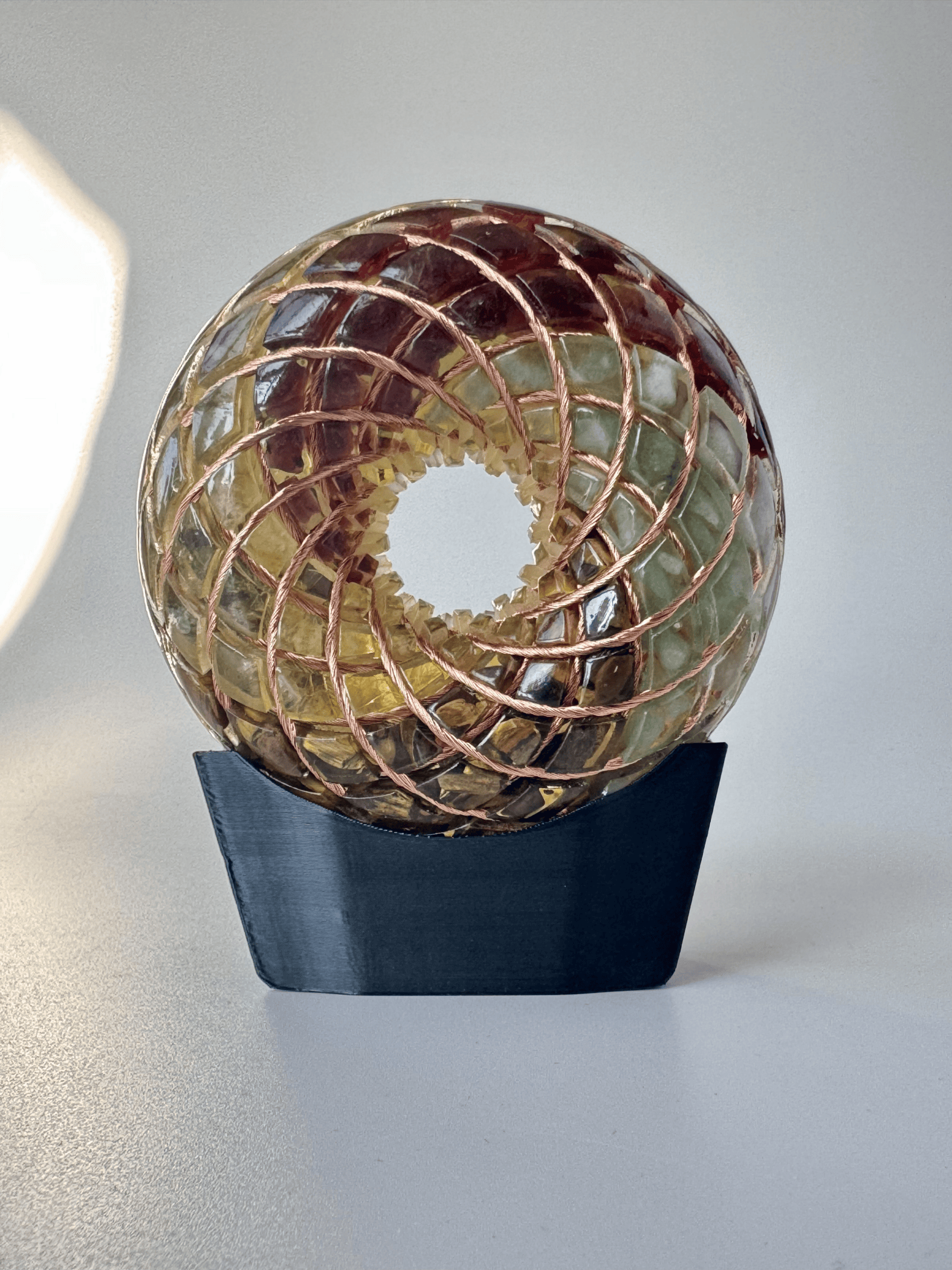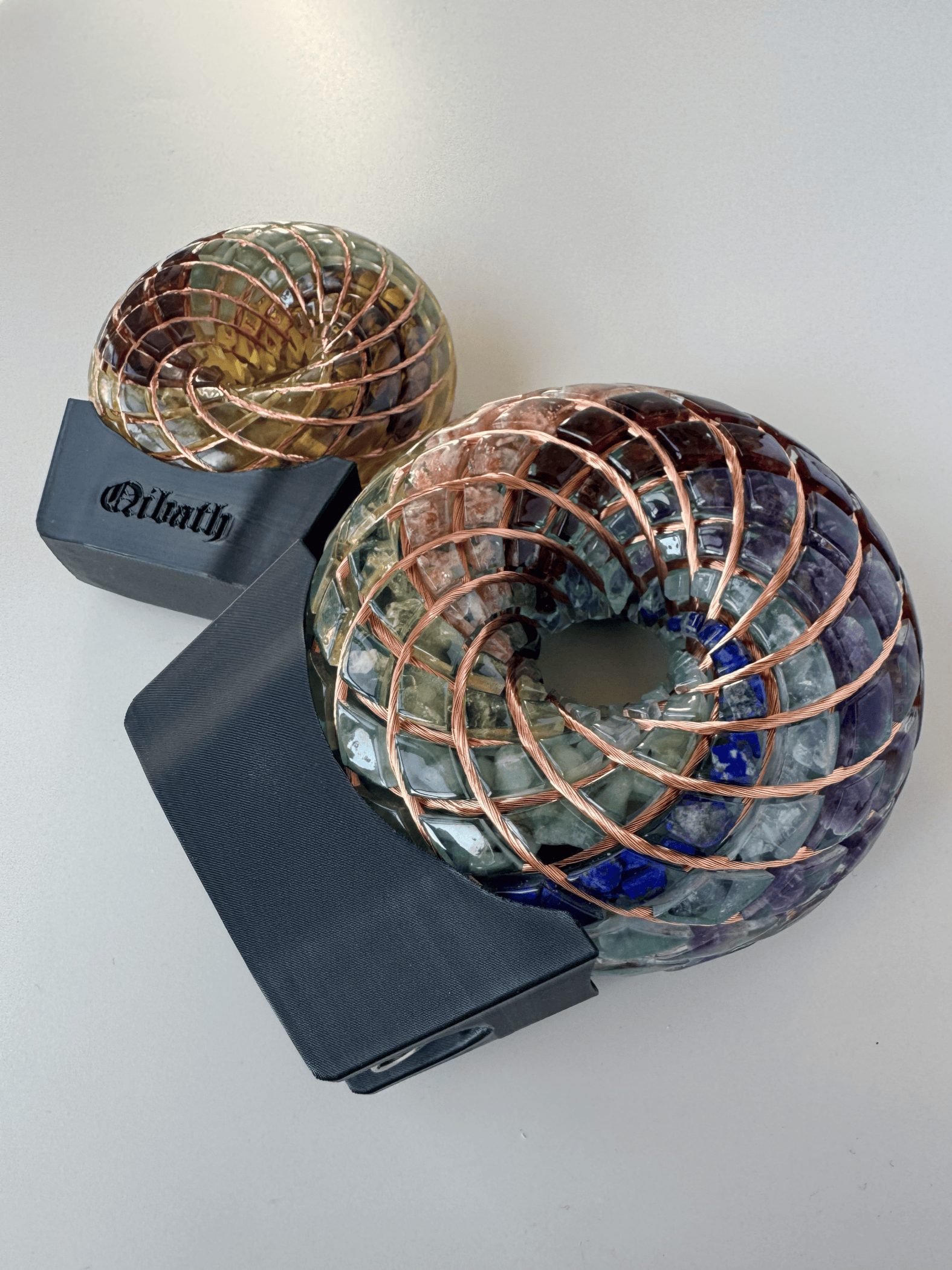 Handcrafted torus coil infused many different crystals and tachyon energy.