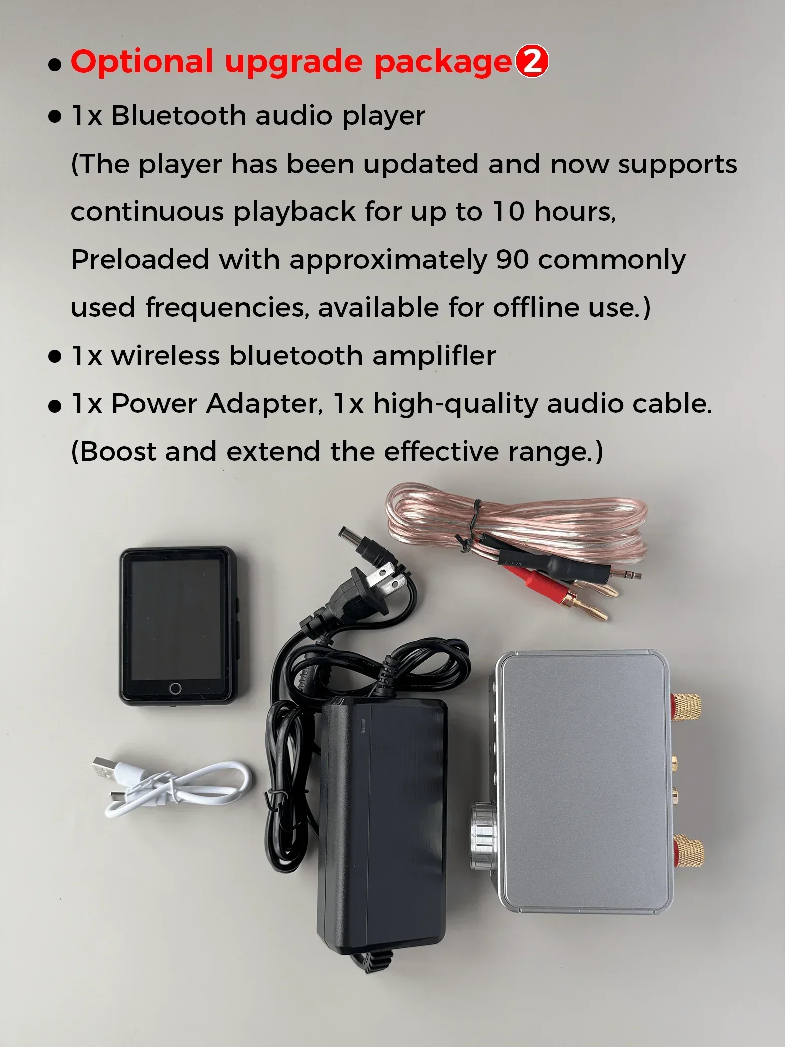 • 1x Bluetooth audio player (Includes over 90 commonly used frequency files, available for offline use.)