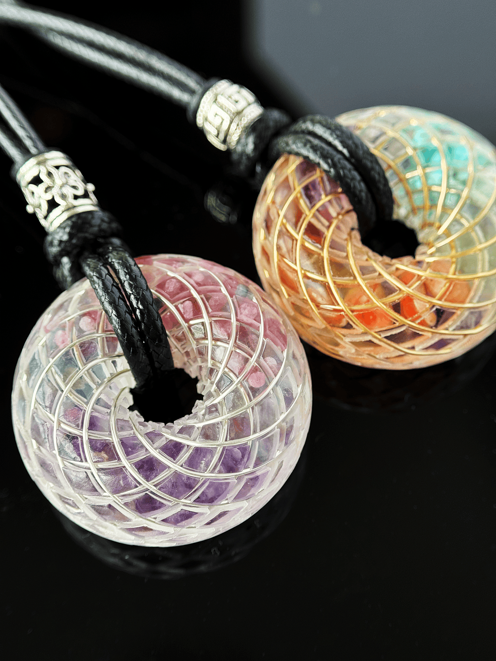 Handmade Rodin Coil Torus Orgonite Pendant Quartz Crystal necklace | Energy Protection and Chakra Balancing