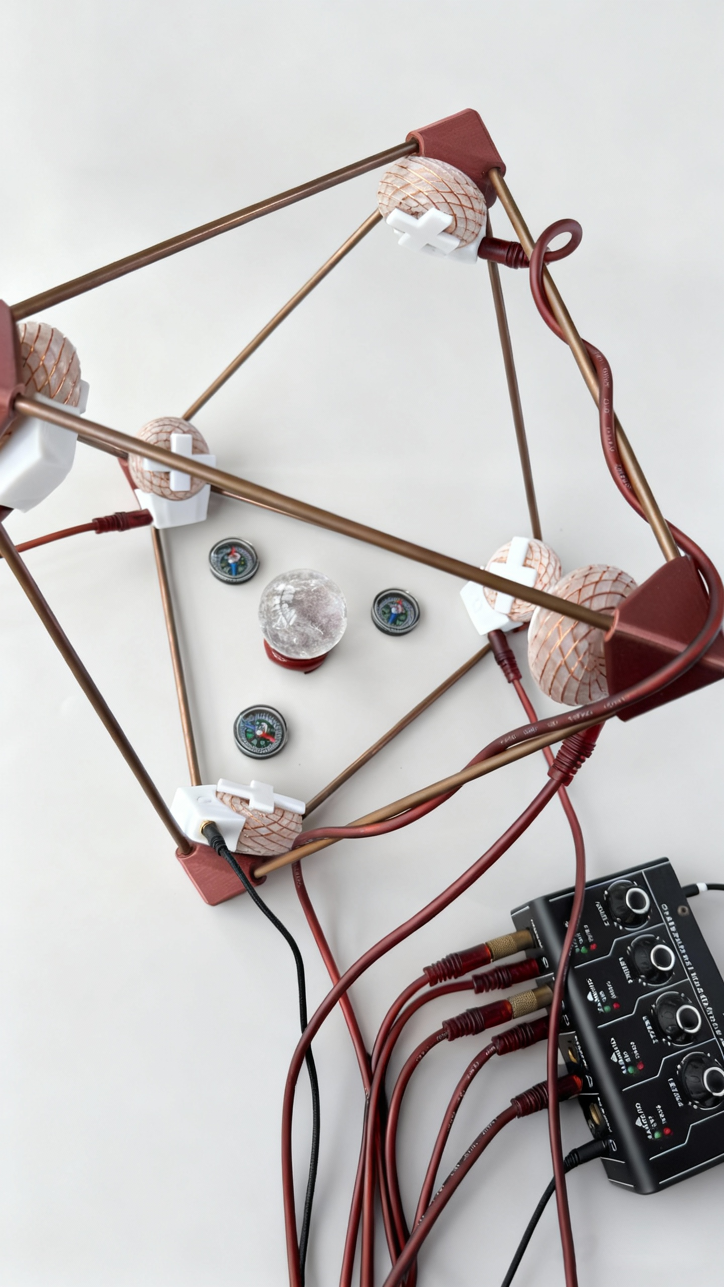 When Rodin coils (5cm) are placed at each vertex and connected to power, the geometry forms a unique resonant energy field, ideal for spiritual practitioners who work with energy flow or manifestation.