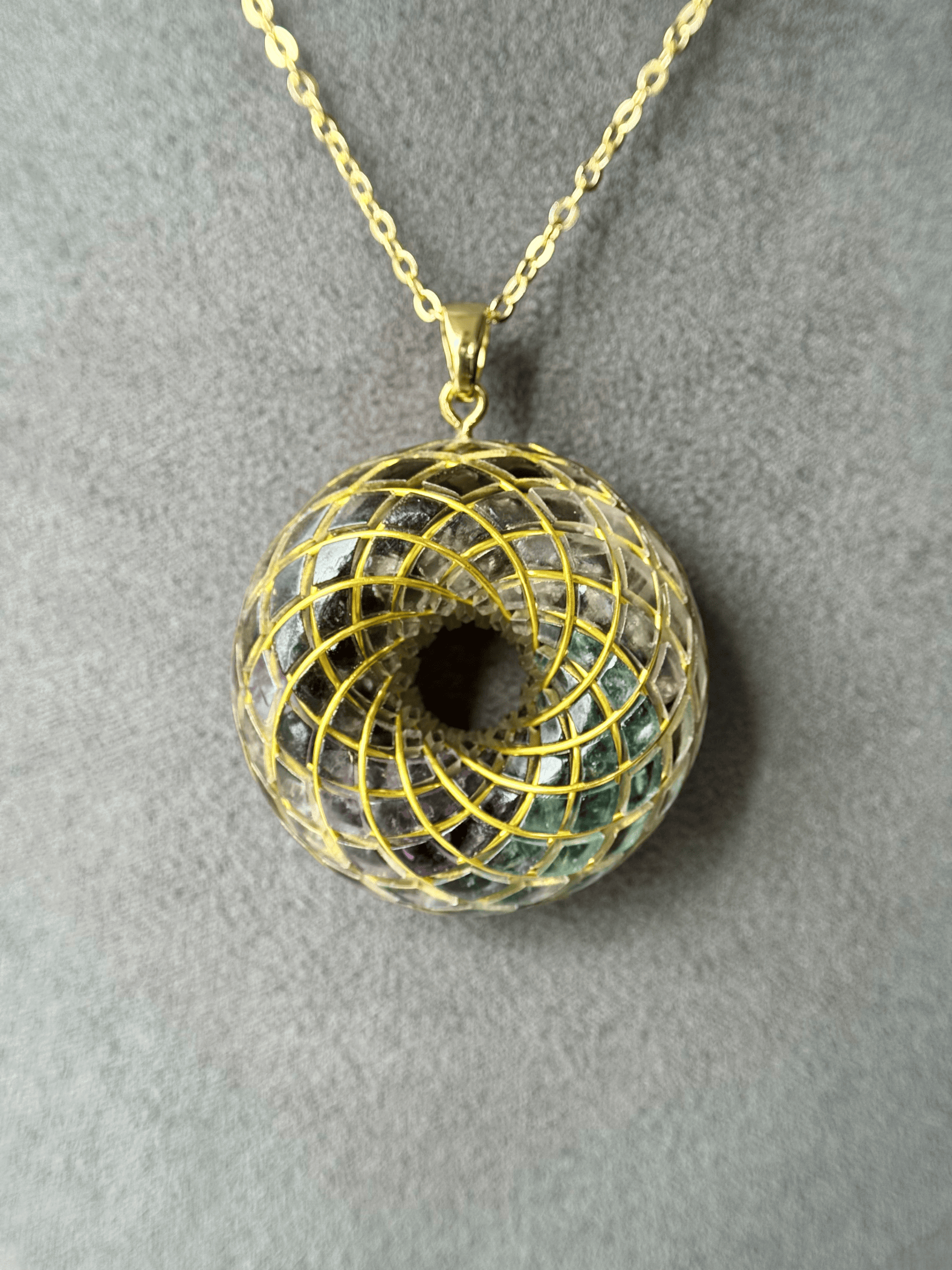 The Standard Pack Includes: A 18k gold-plated chain, Crystal Toroidal Pendant, Elegant Jewelry Box